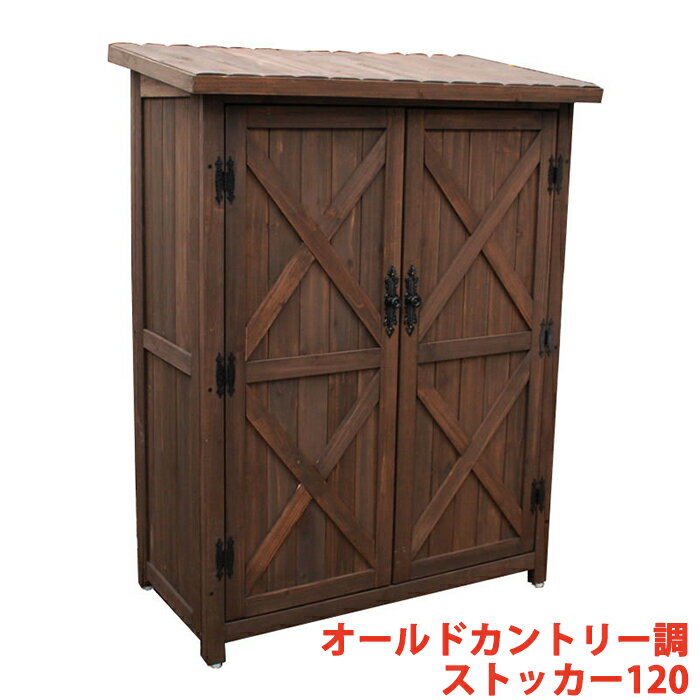 オールドカントリー調ストッカー1200 ダークブラウン 天然木 木製 収納 物置 倉庫 物入れ ウッドラック ガーデニング(代引不可)【送料無料】
